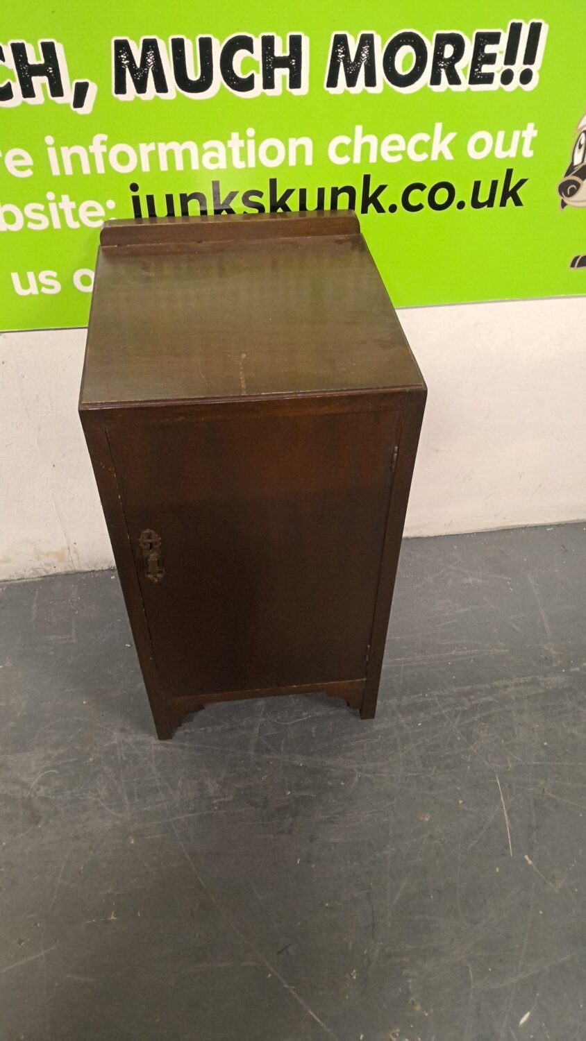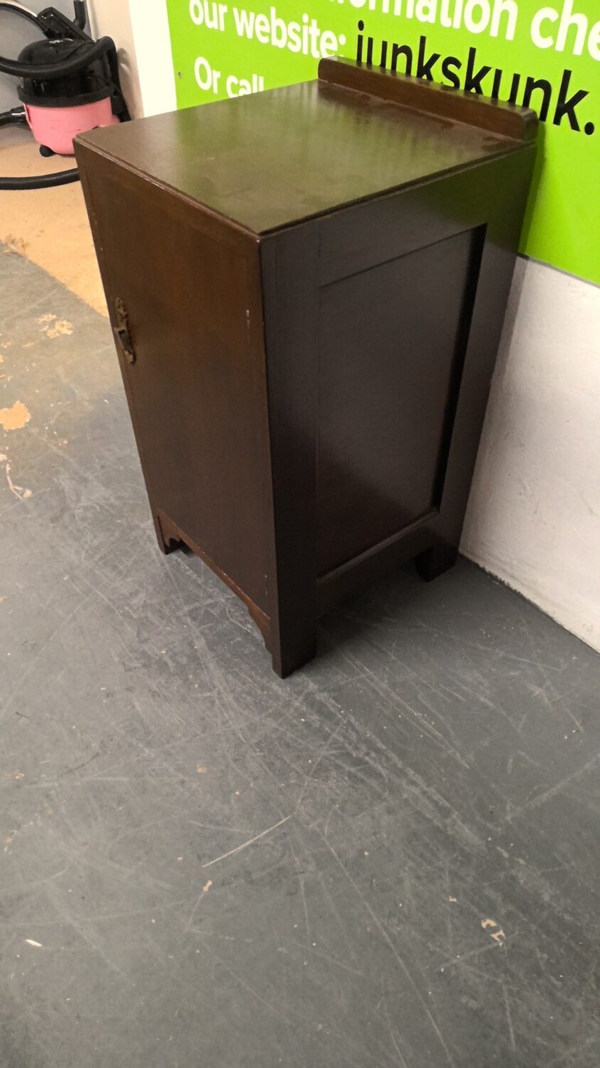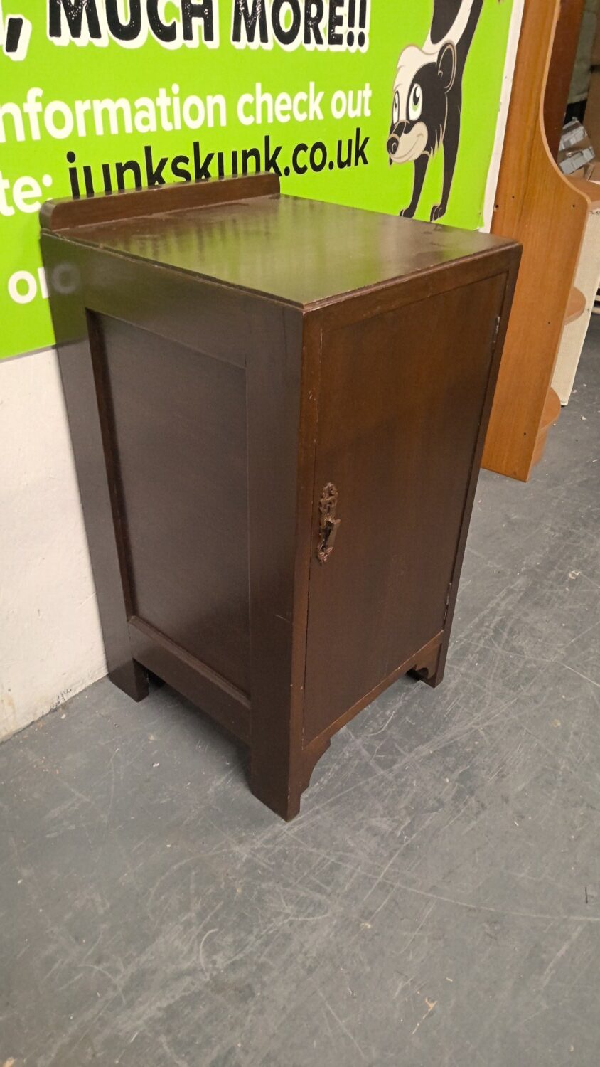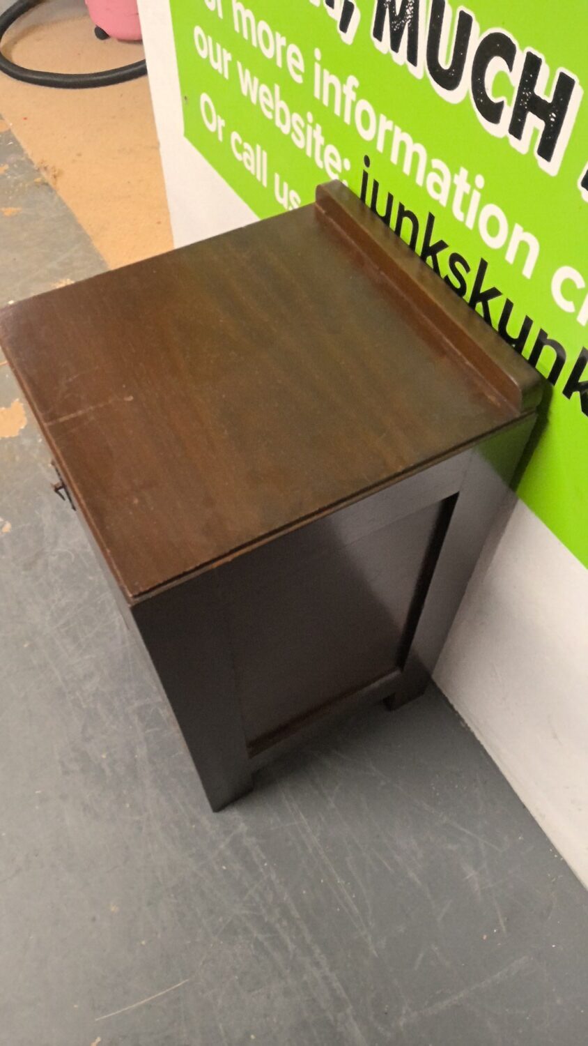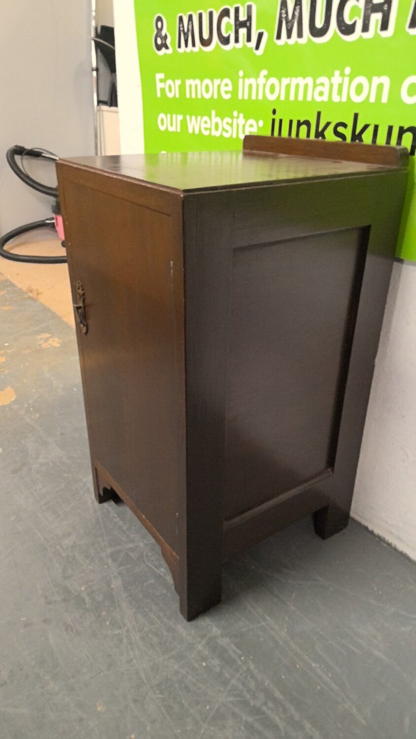 Antique bedside cabinet with storage below finished in dark brown
