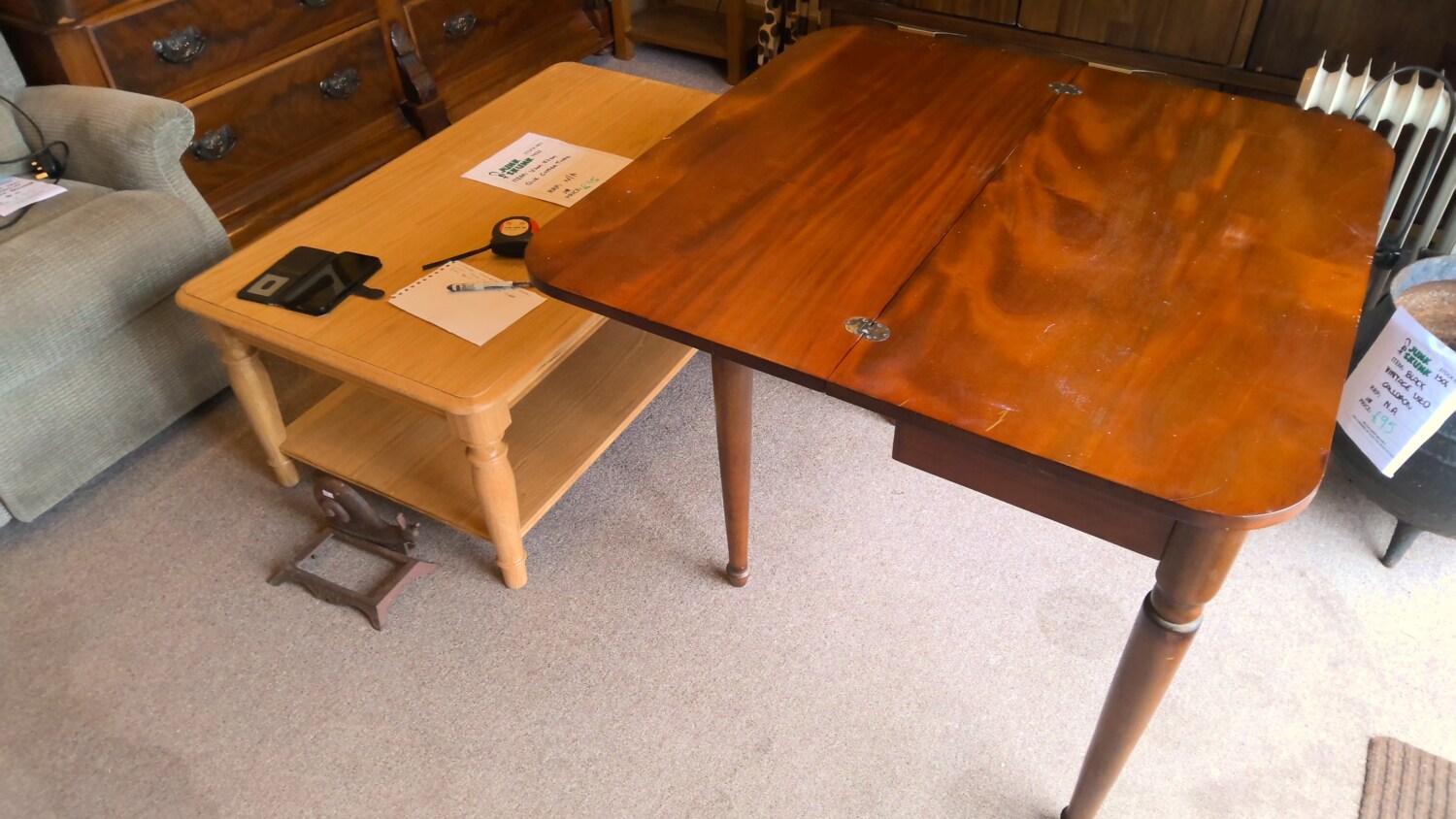 this table is 90cm x 90cm when extended 46cm wide when folded and 73cm high