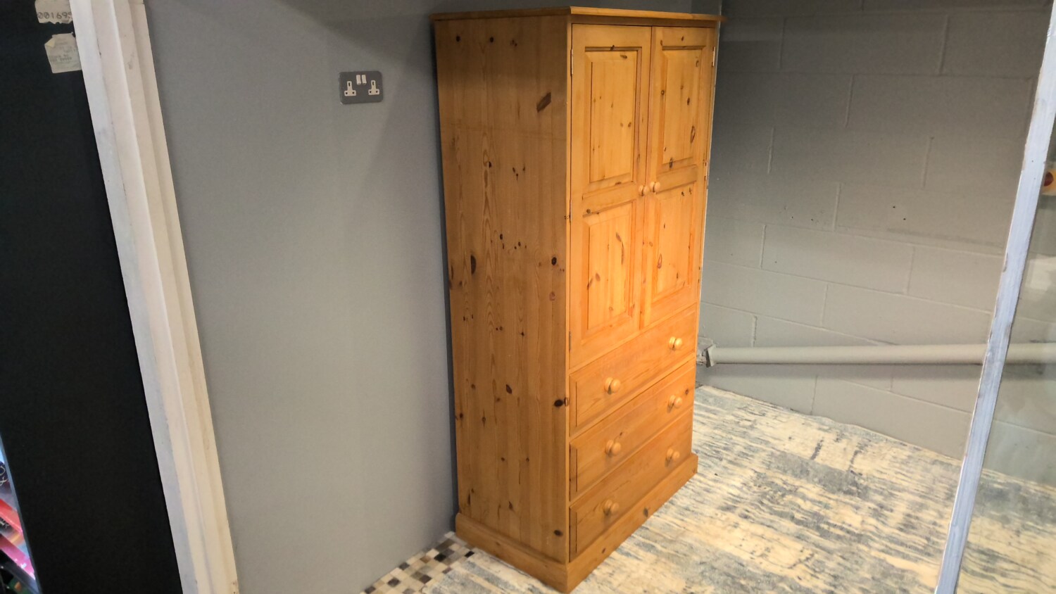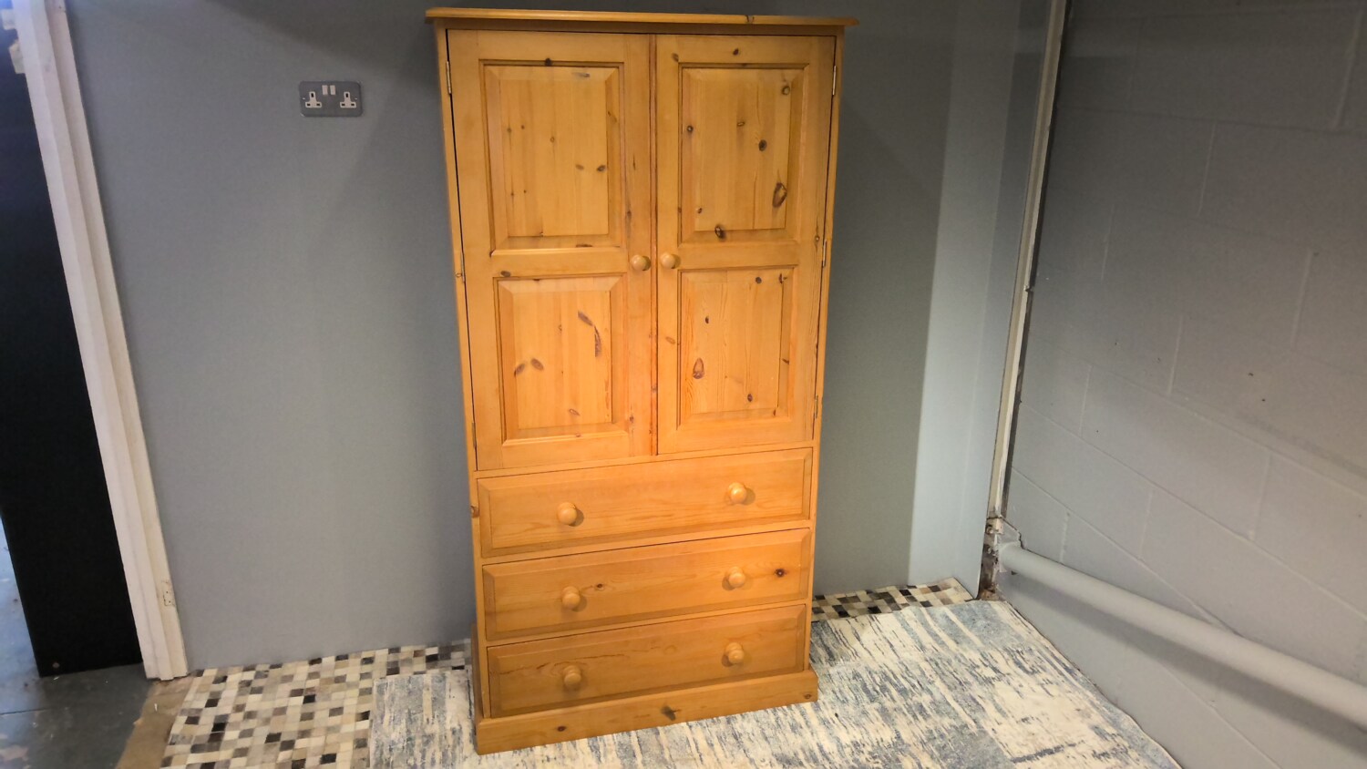 Double Pine Wardrobe With 3 Drawers In The Bottom