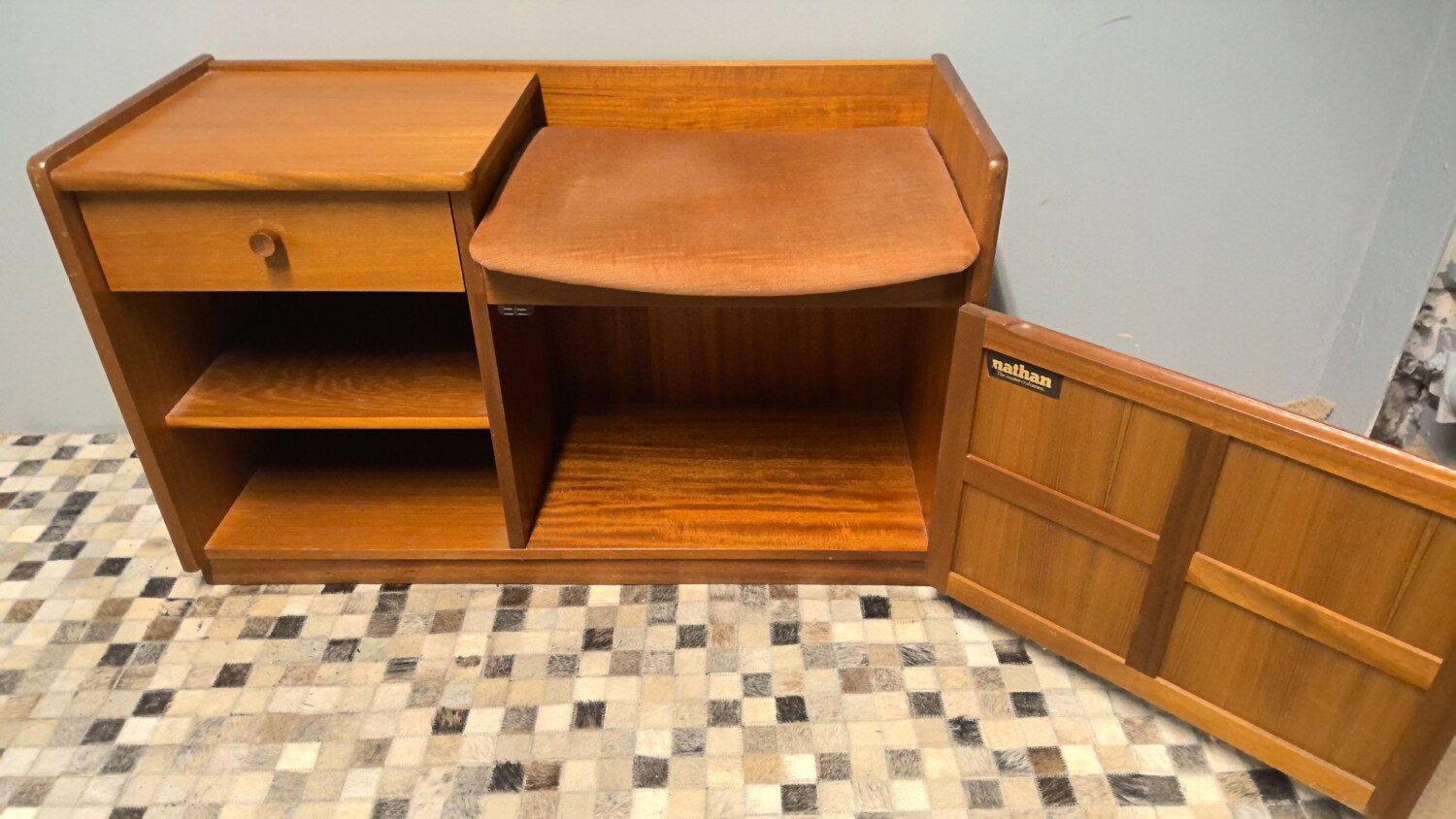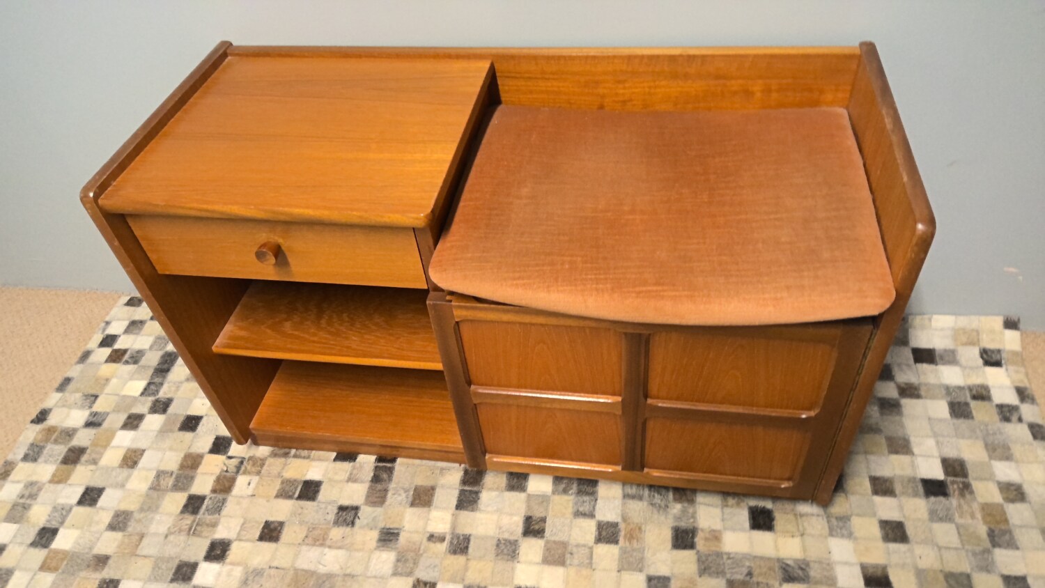 Mid-Century Nathan Telephone Table / Bench With 2 Storage Areas And A Seat On The Top