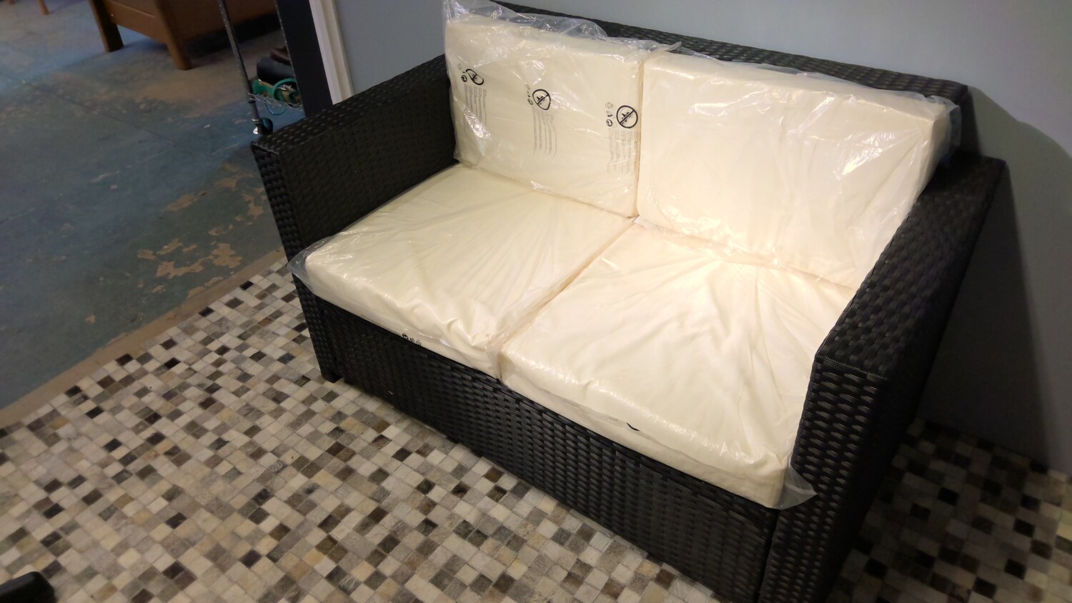 New 2 Seater Rattan Sofa With Cream Cushions This Sofa Is 70CM Wide / 130CM Long / 82CM High / Seat Depth 53CM / Seat Height 44CM /