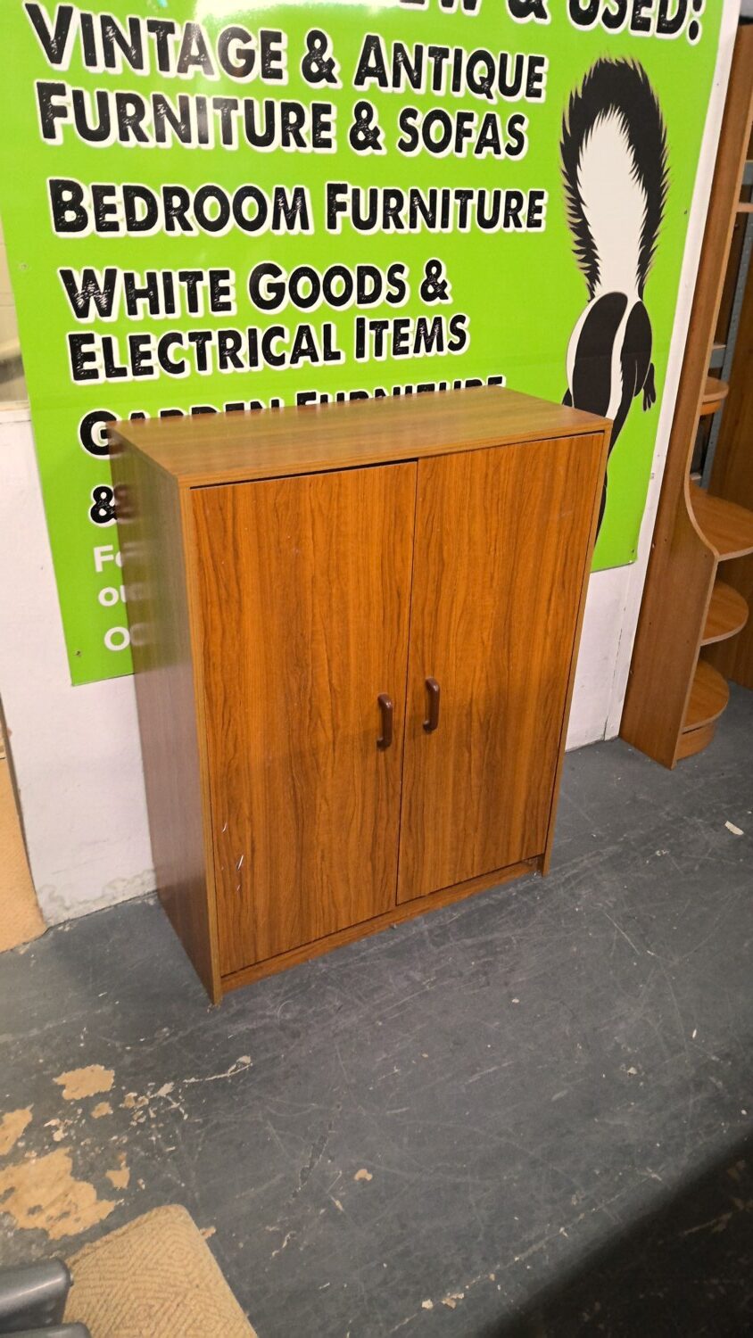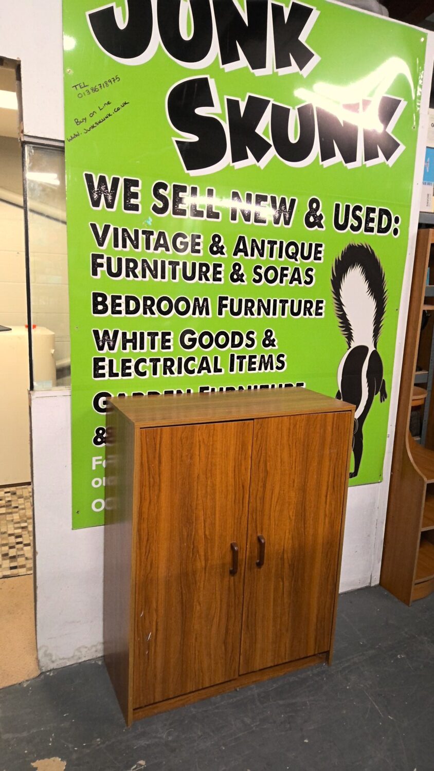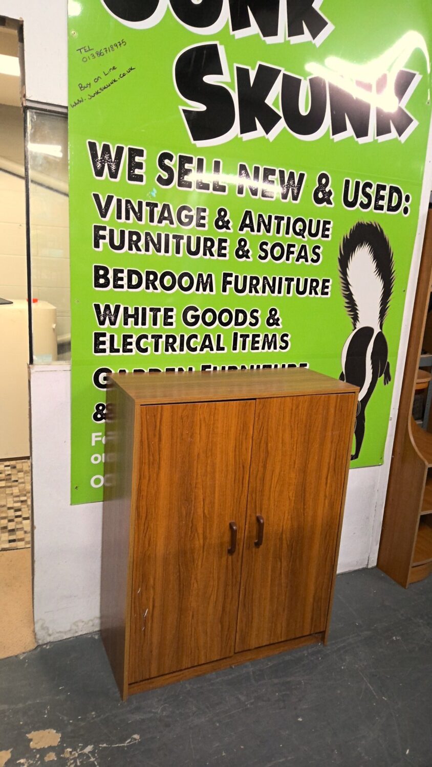 small cabinet / cupboard with 2 doors and 4 shelves that can be adjusted to different heights this cupboard is finished in a grain effect with the original handles in a very good used condition its 81cm long 103cm high / depth is 36cm £25 viewing or collection from our Childswickham warehouse unit 2, willow park, hinton road, childswickham Please remember this warehouse is not open every day So you will need to call us or message us before you come to make sure someone is on site or you can purchase from our online shop just google junkskunk 24-hour a day shopping at the touch of a button Delivery or postage is available once the item is paid for For more info message us or call us on 01386718975 And we will be happy to help