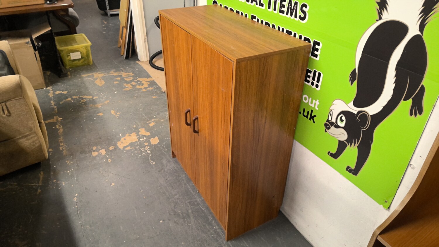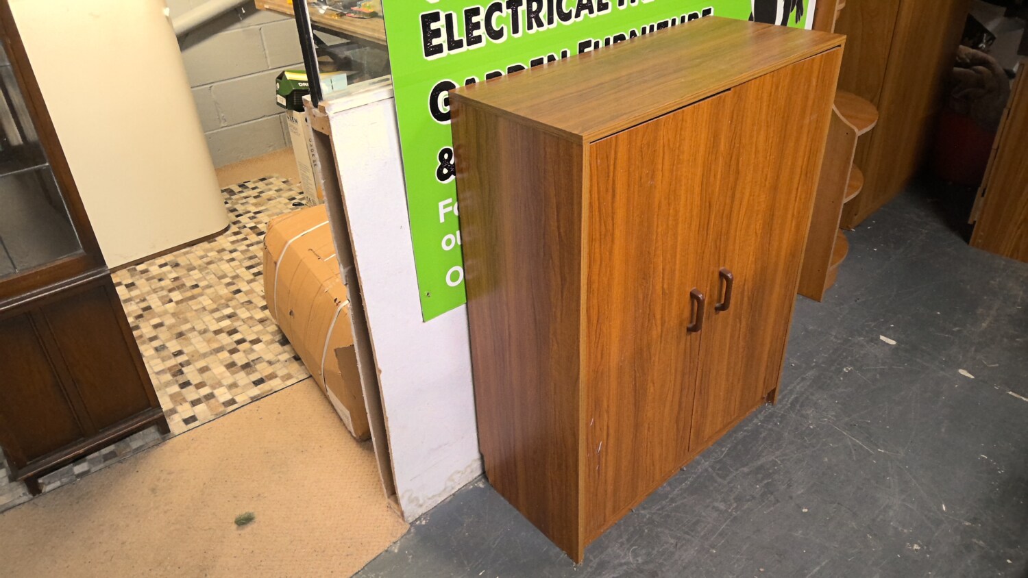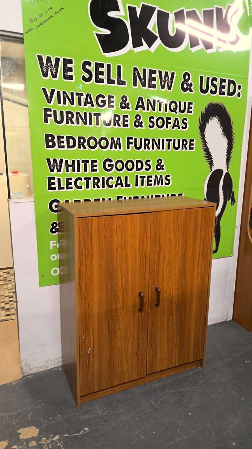 small cabinet / cupboard with 2 doors and 4 shelves that can be adjusted to different heights this cupboard is finished in a grain effect with the original handles in a very good used condition its 81cm long 103cm high / depth is 36cm £25 viewing or collection from our Childswickham warehouse unit 2, willow park, hinton road, childswickham Please remember this warehouse is not open every day So you will need to call us or message us before you come to make sure someone is on site or you can purchase from our online shop just google junkskunk 24-hour a day shopping at the touch of a button Delivery or postage is available once the item is paid for For more info message us or call us on 01386718975 And we will be happy to help