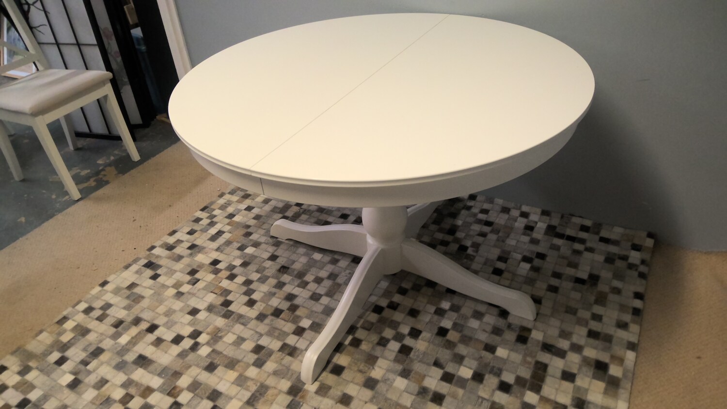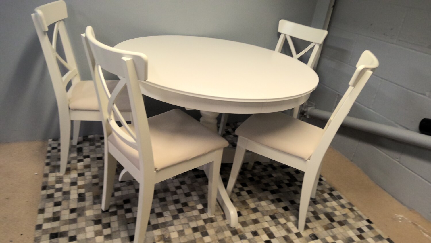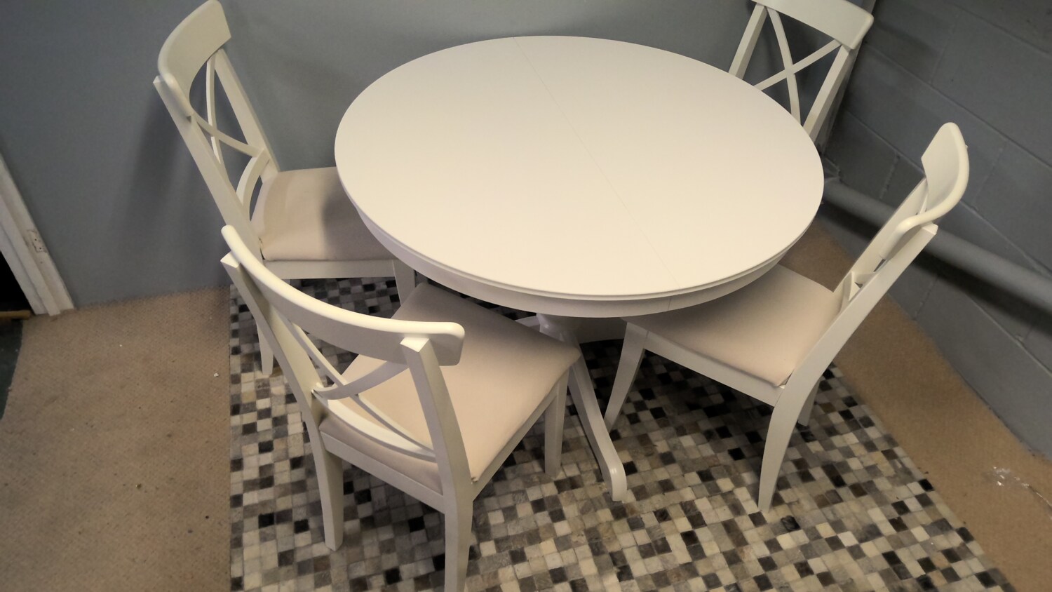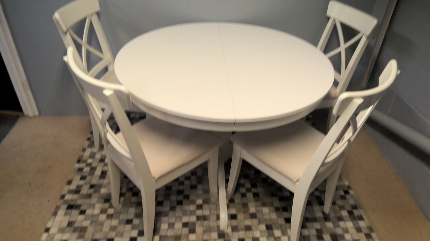 Very Solid Ikea Round Dining Table That Extends With Four Dining Chairs In Very Good Condition