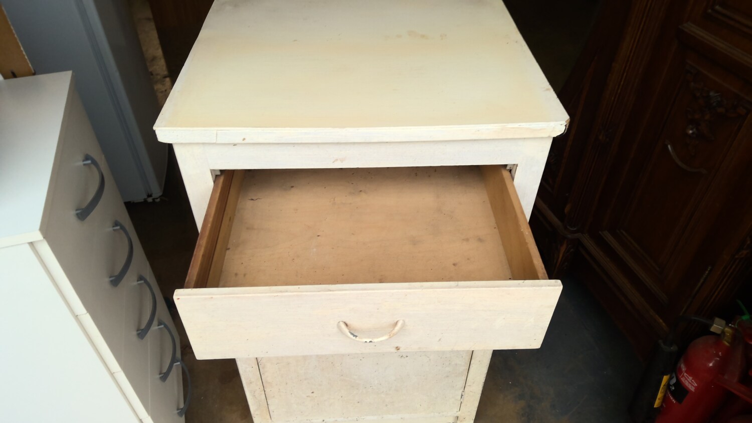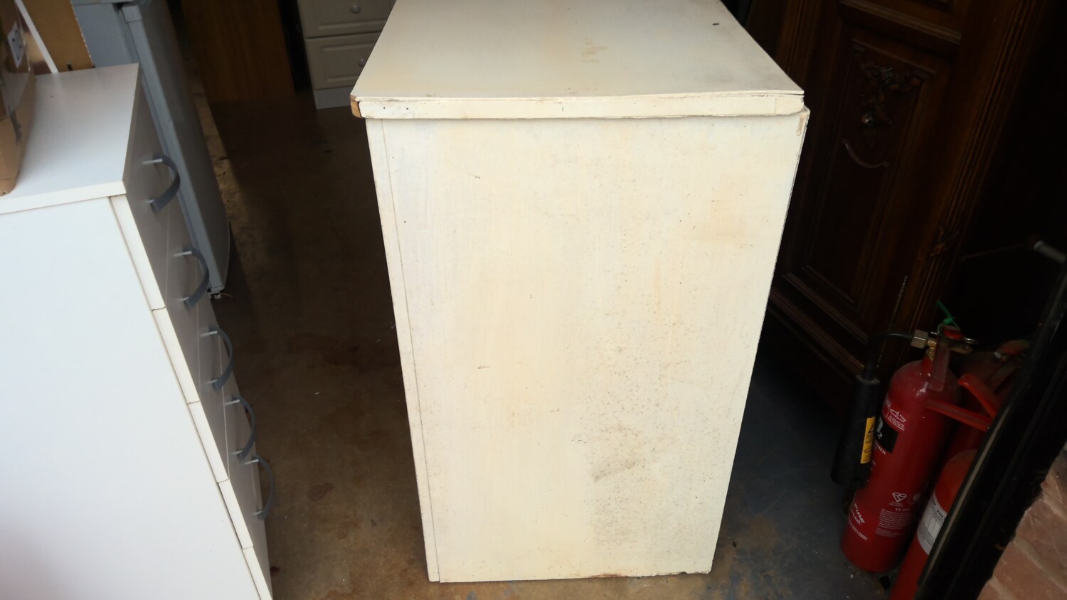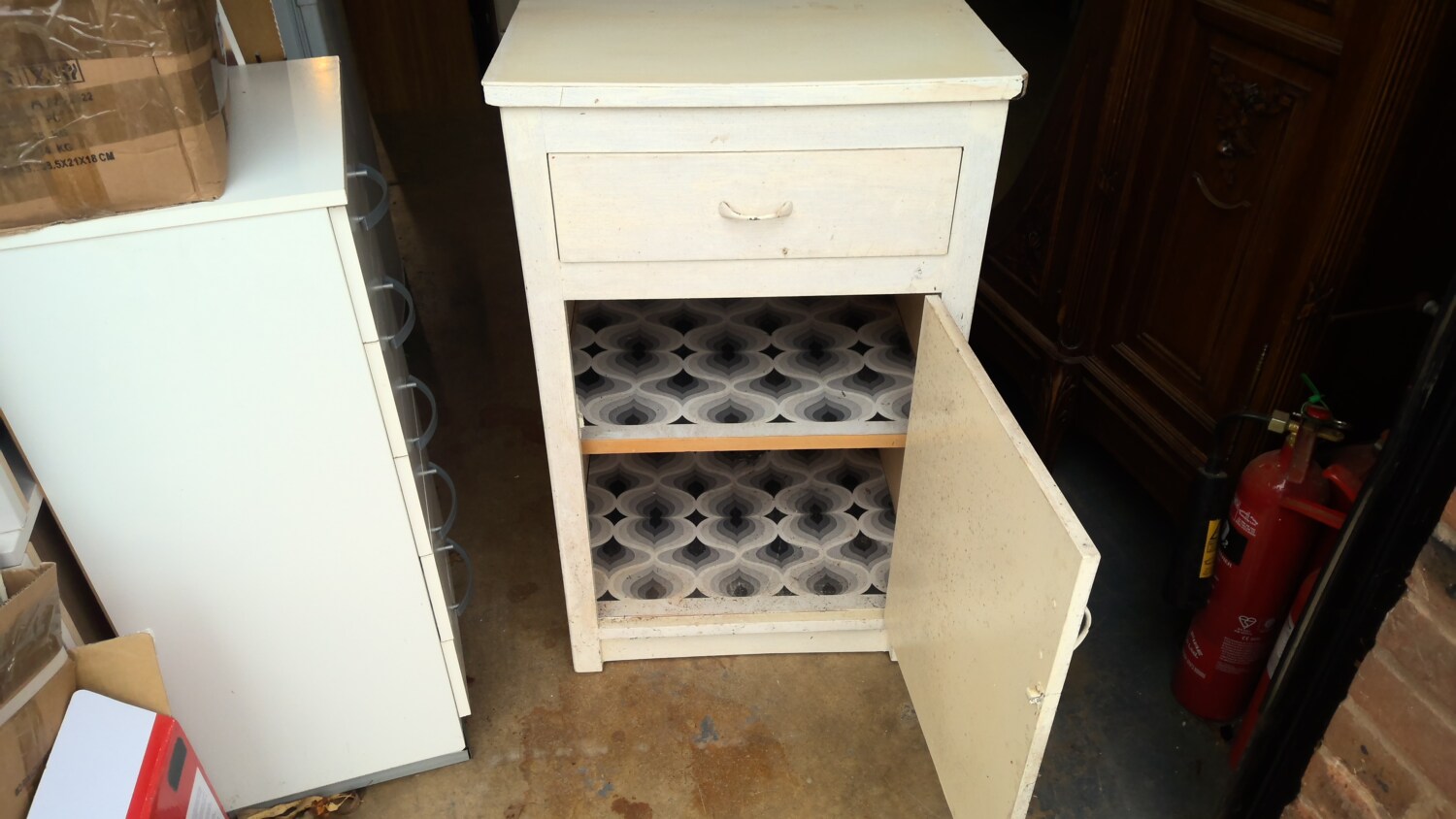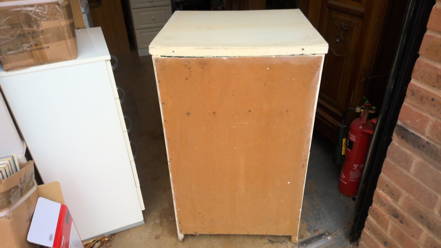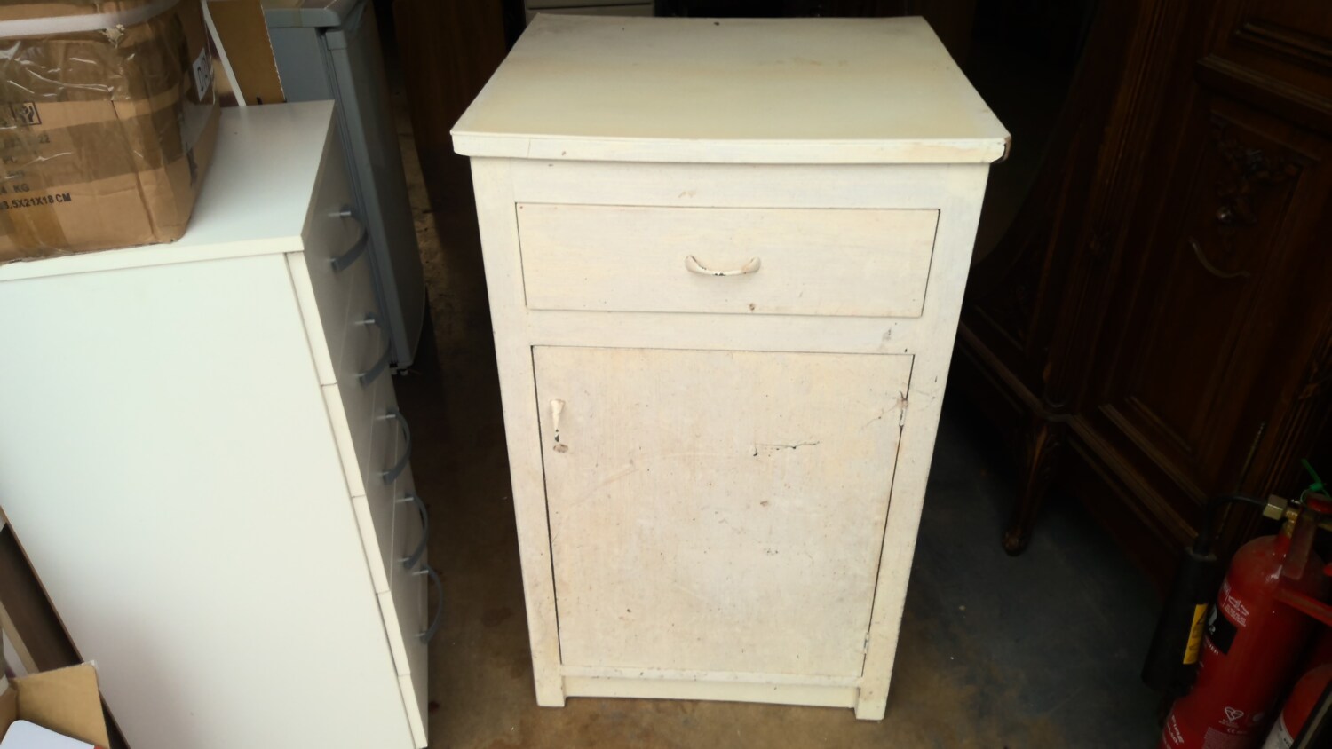 vintage cupboard with draw and storage below finished in white ideal for a garage or shed for storage