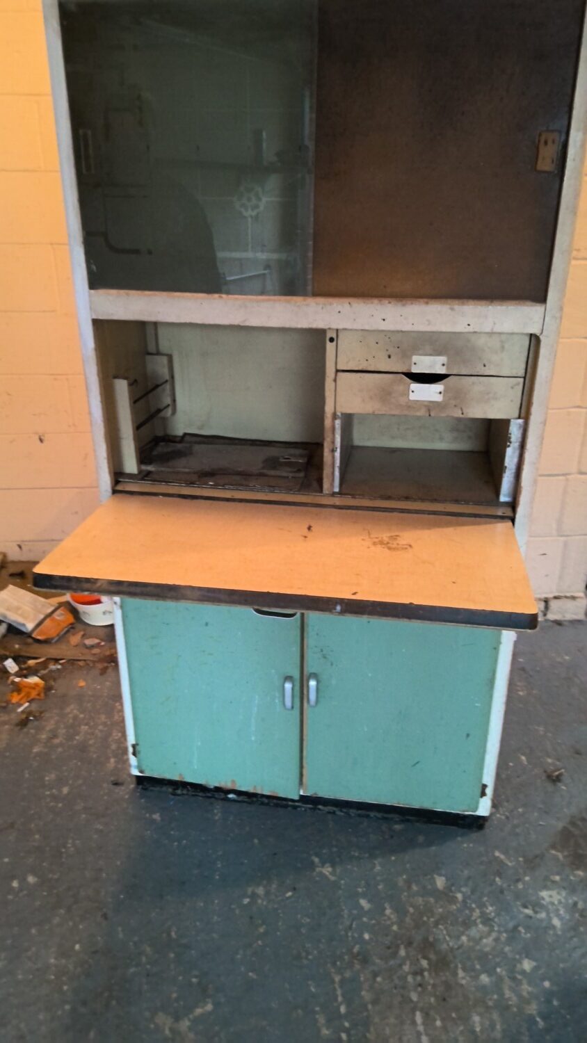 vintage eastham larder / kitchen cabinet with glass sliding doors