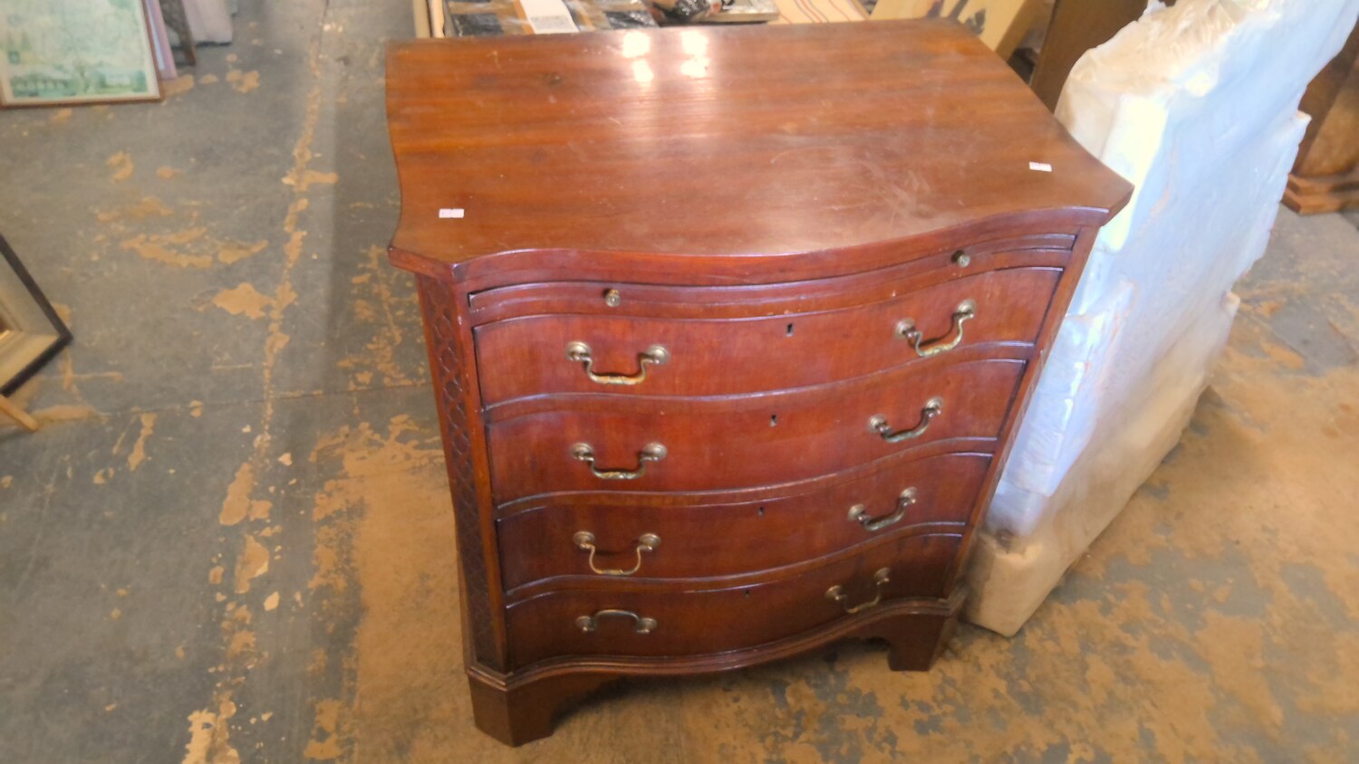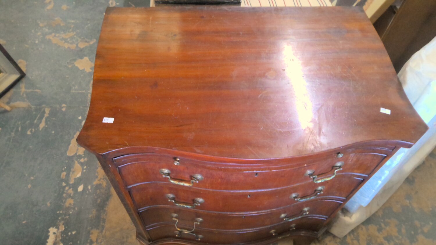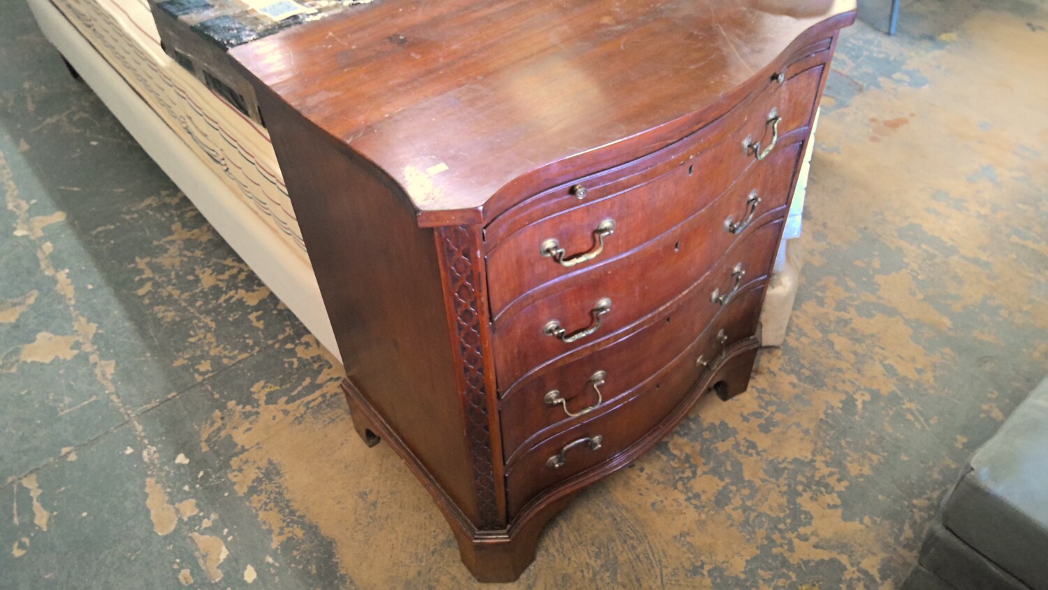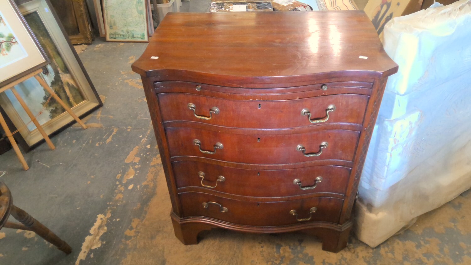 vintage mahogany serpentine chest of drawers with 4 drawers and a pull out top