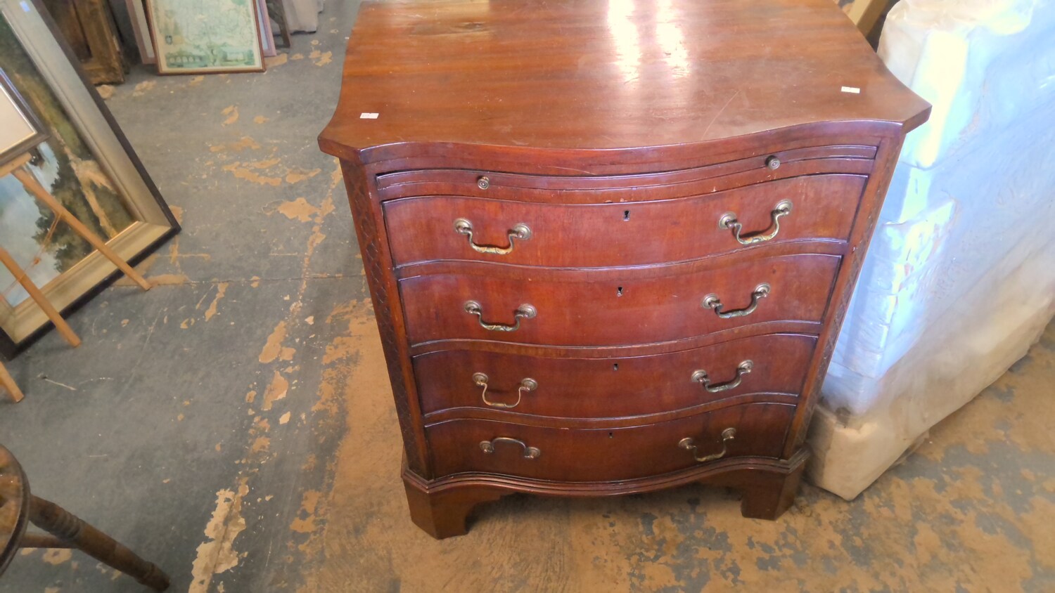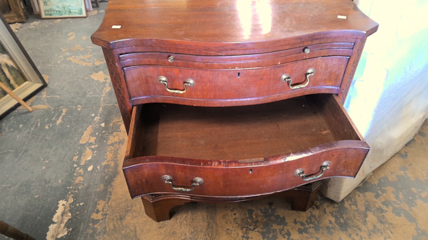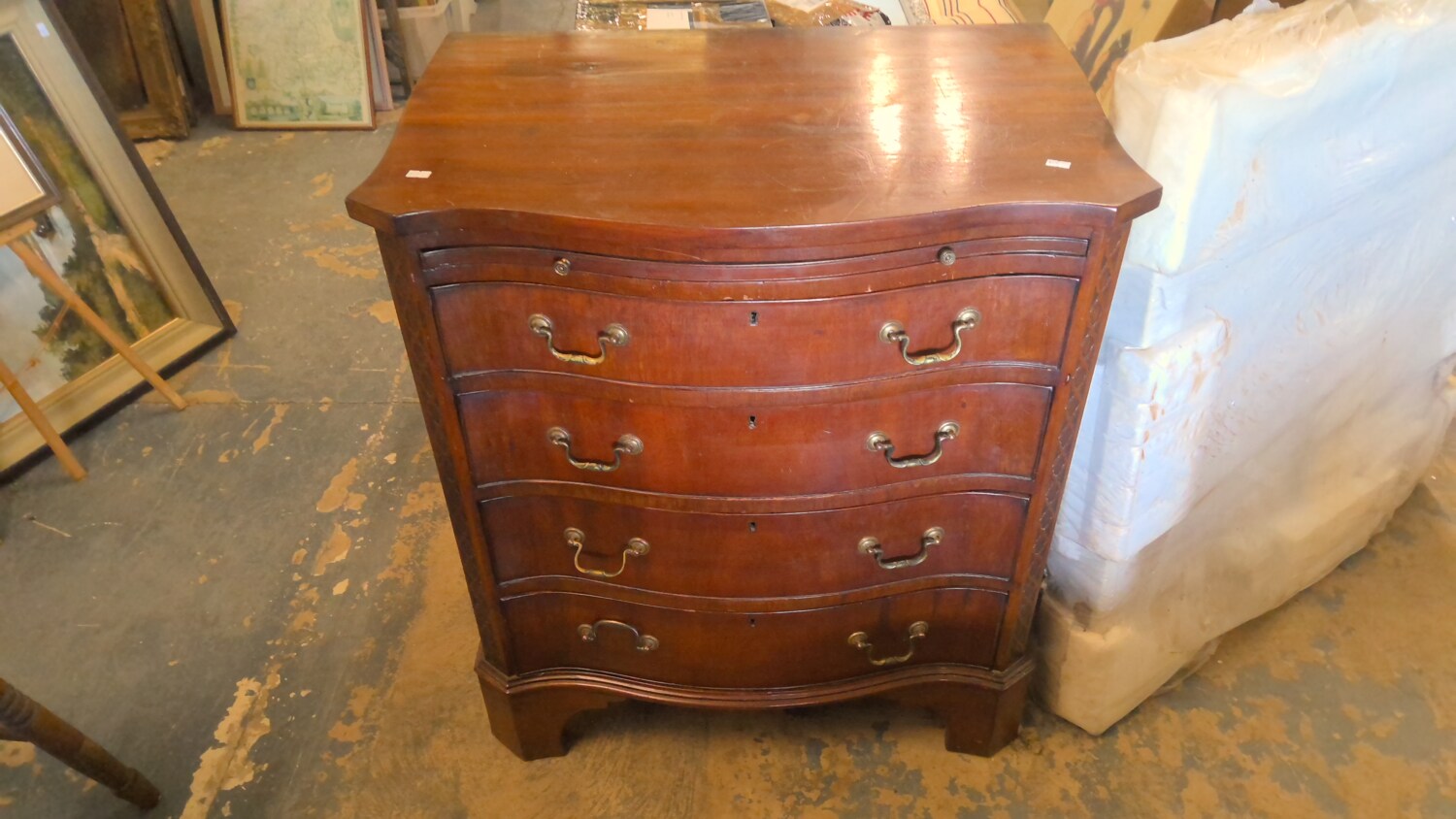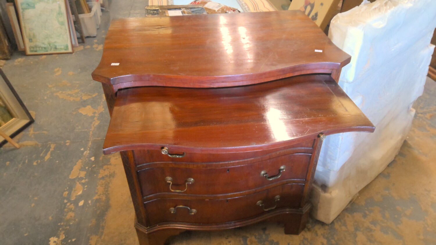 vintage mahogany serpentine chest of drawers with 4 drawers and a pull out top