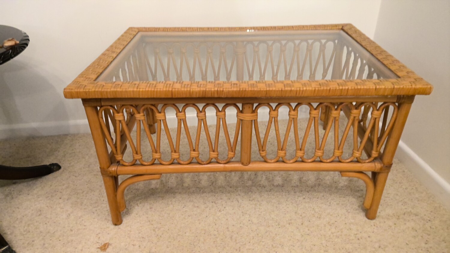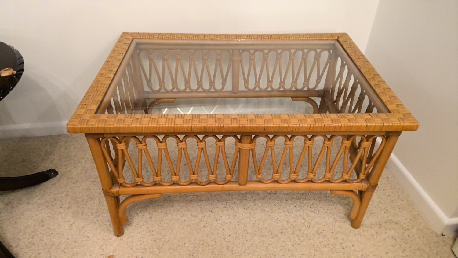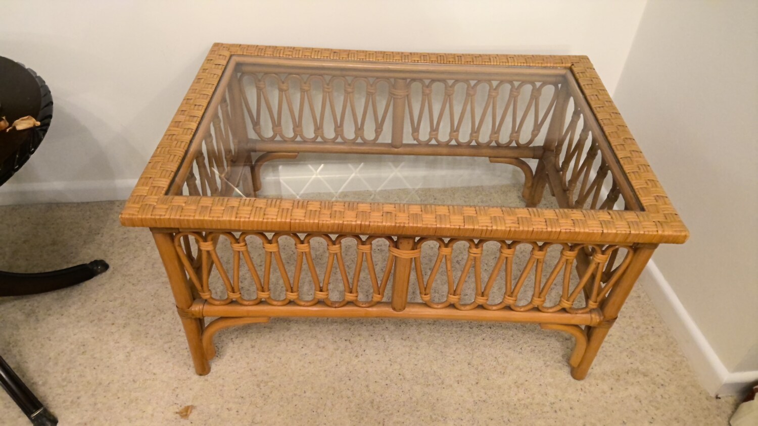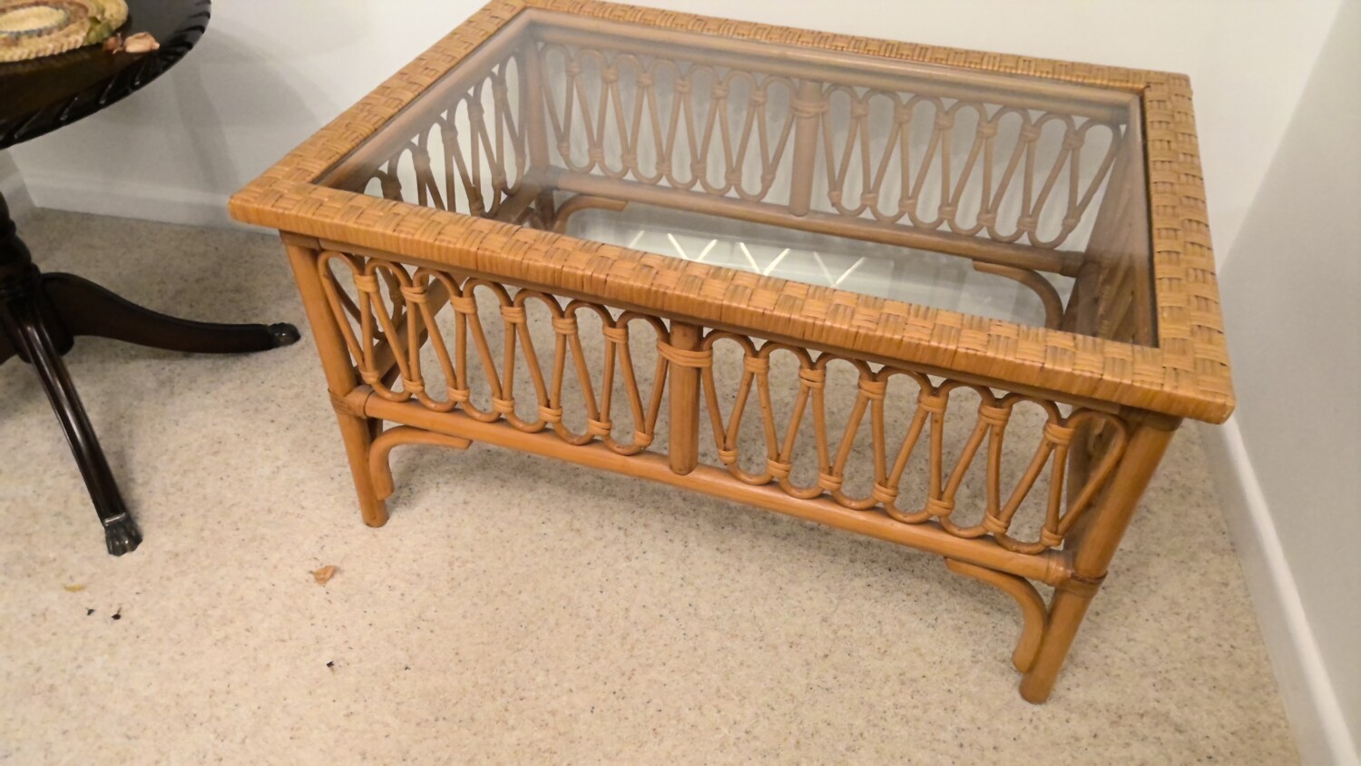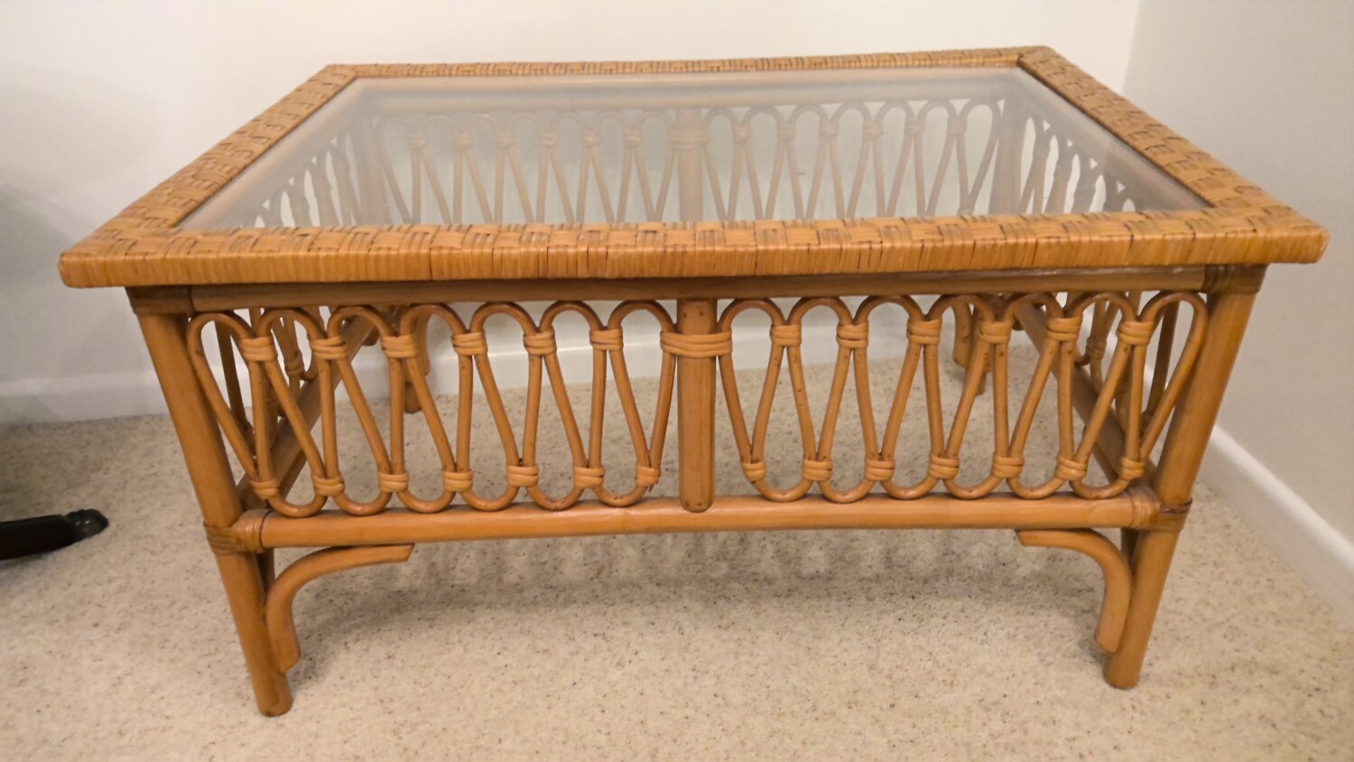 wicker coffee table with glass top in a good used condition this coffee table is 81cm long / depth 55cm / height 44cm